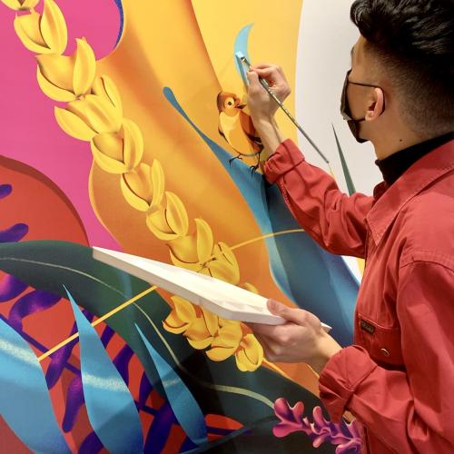 Jason Zante is a Filipino-Canadian artist based in Toronto, Canada. Born in the Philippines in 1998, he received his B.DES in Graphic Design from OCAD University in 2020. With a multidisciplinary background ranging from large-scale mural installations to paintings and illustrations, his work depicts surreal, dream-like worlds filled with bold and saturated colours. He explores nature's vibrant qualities with influences from simple, everyday leisure to more complex concepts about his Filipino culture. He employs visual metaphors to personify symbols, shapes, and plants, using his imagination and personal photographs as references to create digital and acrylic works.